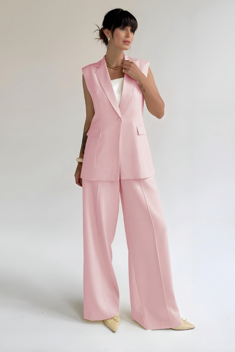 Αναδείξτε το προσωπικό σας στυλ με το εντυπωσιακό Set Παντελόνι-Γιλέκο Μακρύ σε ροζ χρώμα.