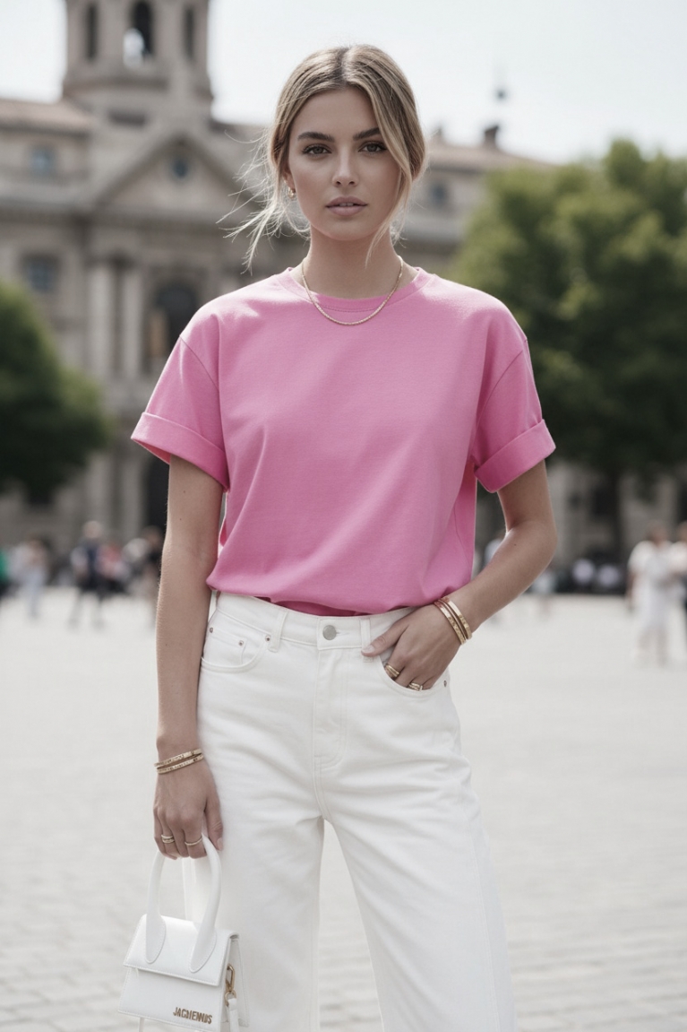 Ανανεώστε το στυλ σας με τη μοντέρνα μπλούζα με ρεβέρ σε υπέροχο ροζ χρώμα.