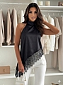 Μπλούζα Ασύμμετρη με Δαντέλα στο τελείωμα - Μαύρο