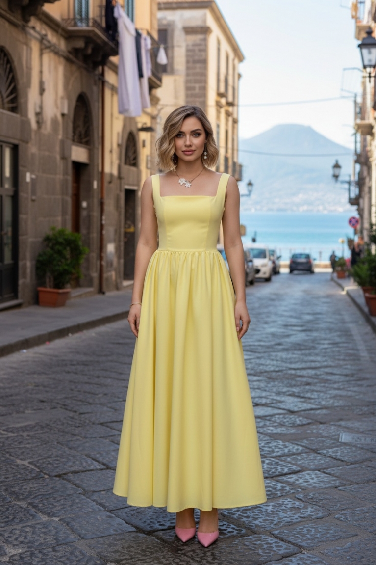 Maxi Φόρεμα με Φιόγκο πίσω - Κίτρινο