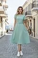 Midi Detail Φόρεμα με Ζώνη - Φυστικί