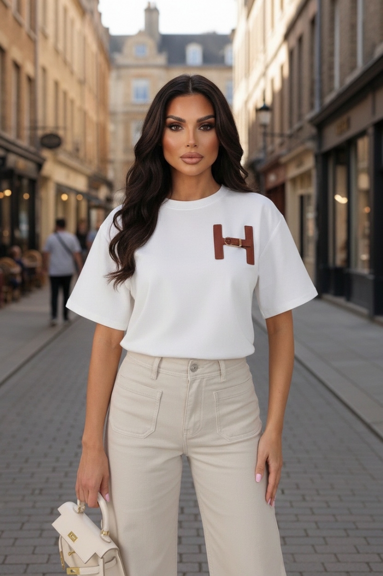 Αναδείξτε το στυλ σας με το chic τοπ σε λευκό χρώμα και μοναδική buckle λεπτομέρεια.