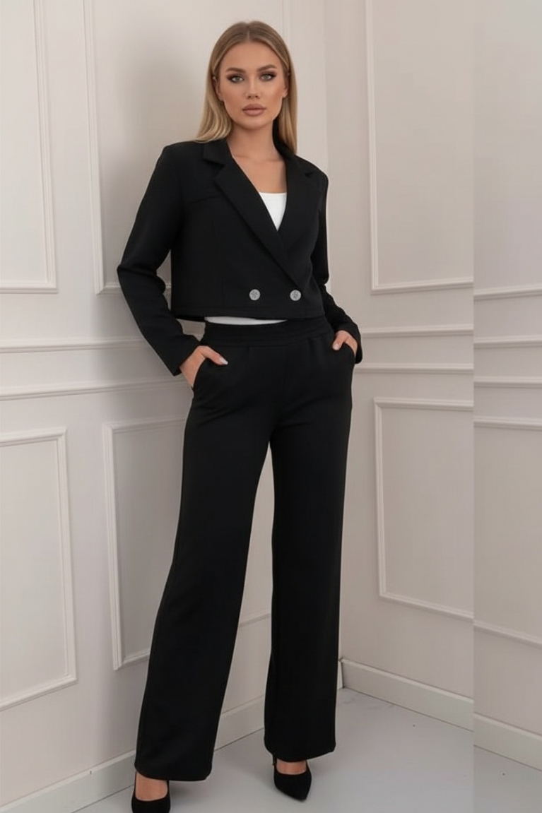 Σετ Ζακετάκι Cropped με Παντελόνι - Μαύρο
