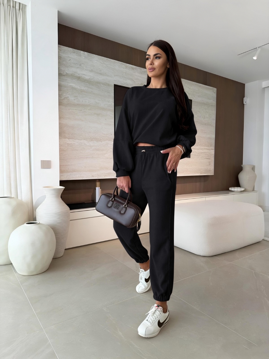 Ανανεώστε το στυλ σας με το κομψό και άνετο σετ φόρμας σε μαύρο χρώμα.