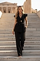 Σετ Παντελόνι & Αμάνικο Blazer με Λεπτομέρειες Βολάν & Ζώνη - Μαύρο