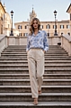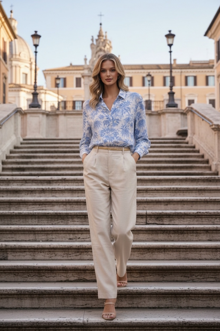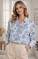 Ανακαλύψτε το Πουκάμισο Chic Floral σε λευκό χρώμα με Σιέλ μοτίβο, που συνδυάζει κομψότητα και θηλυκότητα με μοντέρνο floral μοτίβο.