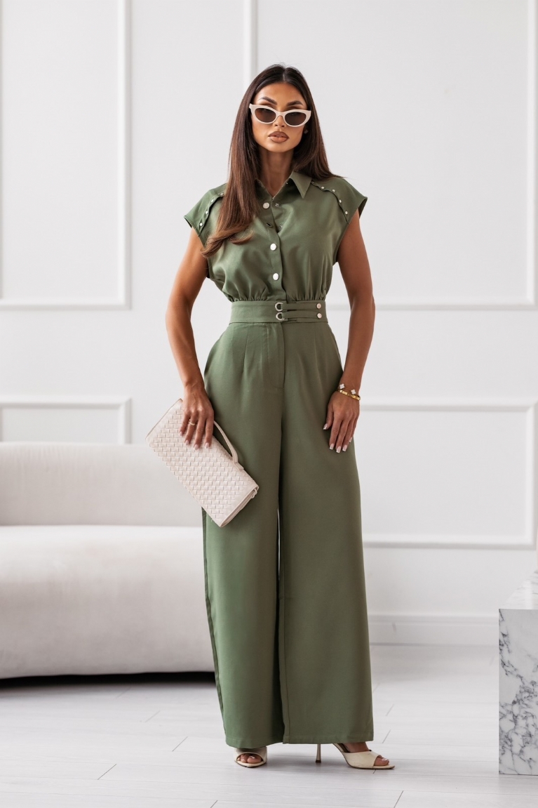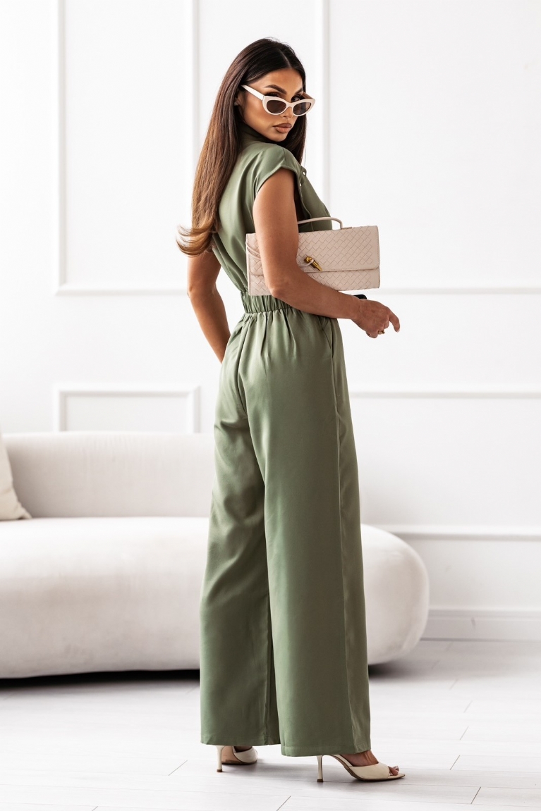 Αναδείξτε το στυλ σας με την ολόσωμη αμάνικη φόρμα σε μοντέρνο λαδί χρώμα.