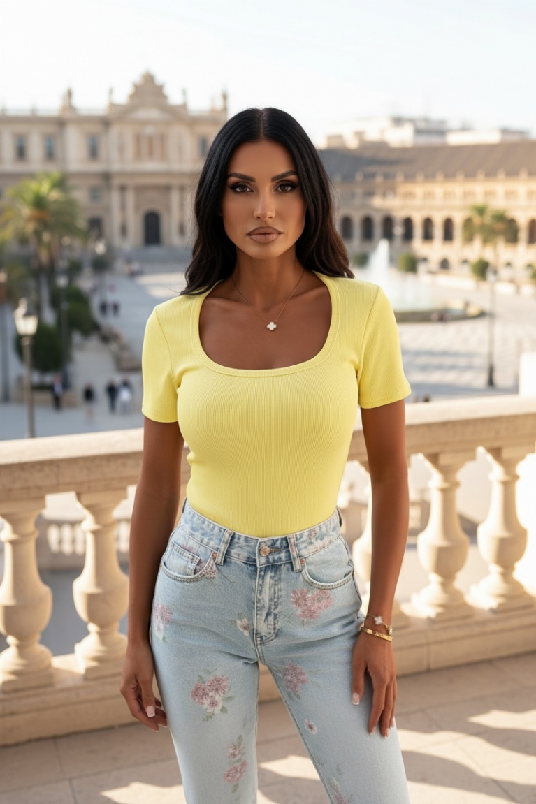 Ανανεώστε τη συλλογή σας με αυτό το κοντομάνικο τοπ σε ζωηρό κίτρινο χρώμα.