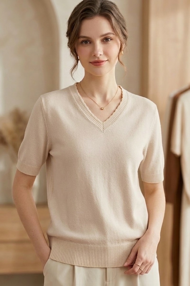 Το V ντεκολτέ και τα κοντά μανίκια αναδεικνύουν τη θηλυκότητά σας και προσθέτουν κομψότητα σε κάθε σύνολο.