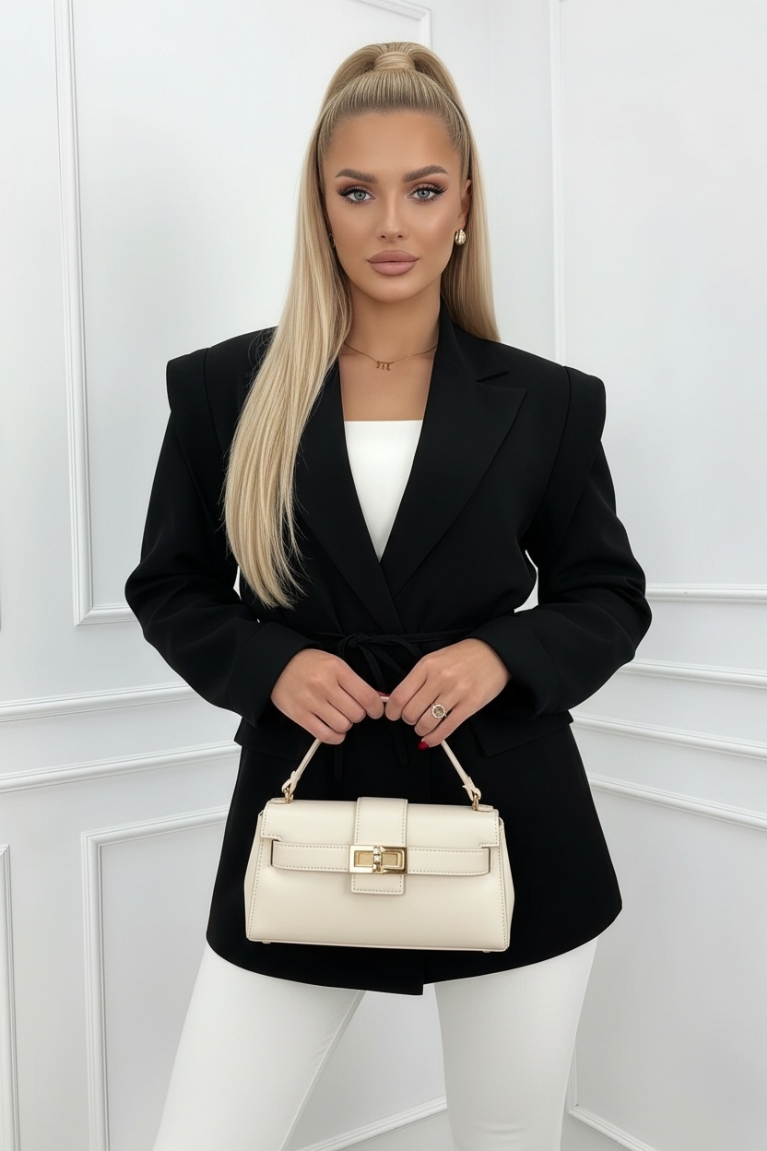 Αναδείξτε το προσωπικό σας στυλ με το μαύρο σακάκι blazer με κορδόνι στη μέση.