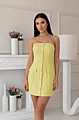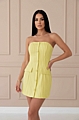 Ριγέ Στράπλες Μίνι Φόρεμα με Κουμπιά & Διακοσμητικές Τσέπες - Κίτρινο