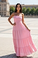 Αναδείξτε το καλοκαιρινό σας στυλ με το Maxi Φόρεμα Boho Style με Βολάν σε υπέροχο ροζ χρώμα.