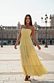 Αναδείξτε τη θηλυκότητά σας με το Maxi Φόρεμα Boho Style με Βολάν σε εκθαμβωτικό κίτρινο χρώμα.