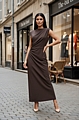 Maxi Φόρεμα με Ντραπέ Λεπτομέρειες - Καφέ