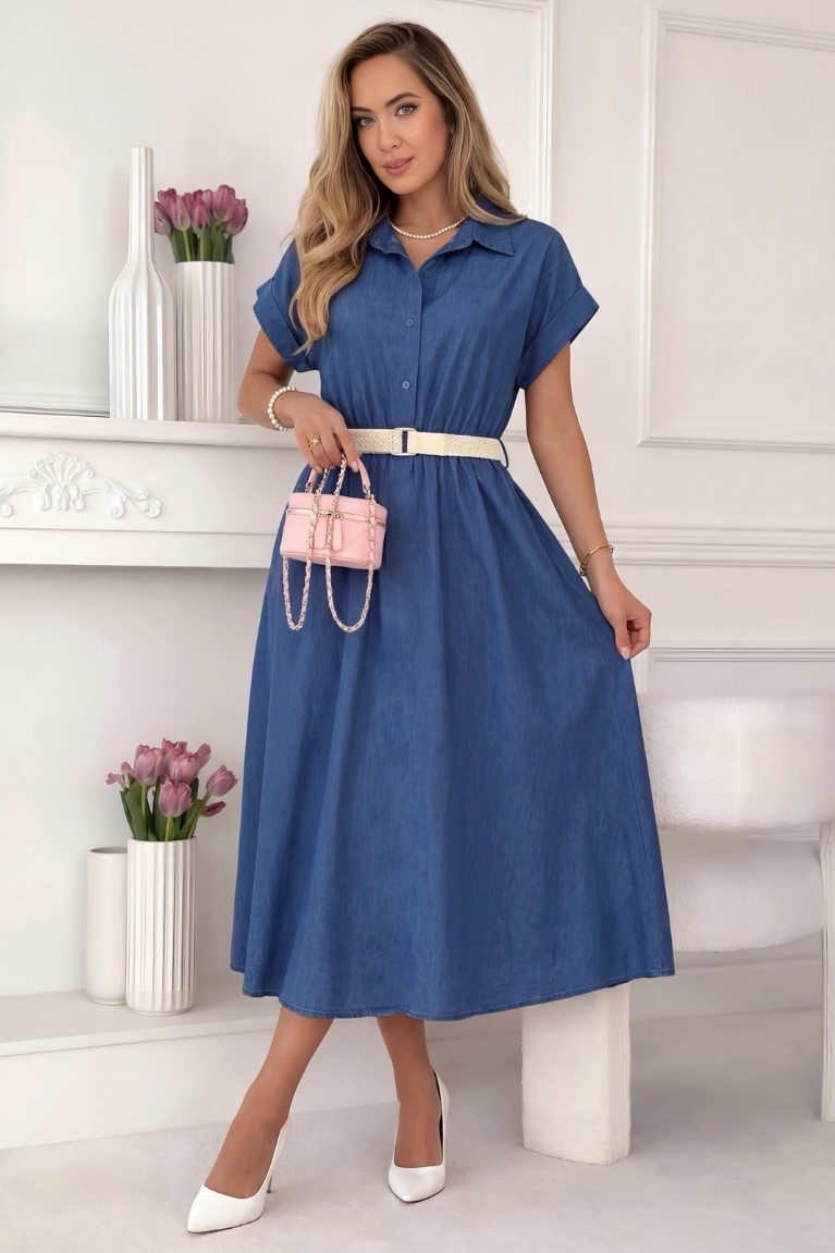 Το μπλε ραφ χρώμα του προσφέρει διαχρονική φινέτσα, ενώ η ζώνη στη μέση αγκαλιάζει υπέροχα τη σιλουέτα χαρίζοντας στυλ και άνεση.