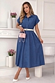Midi φόρεμα με ζώνη σε A γραμμή - Μπλε ραφ