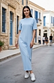 Μακρύ Φόρεμα T-Shirt με Σχισίματα - Γαλάζιο