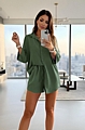 Ανανεώστε το στυλ σας με το μονόχρωμο σετ πουκάμισο-σορτς σε κομψή λαδί απόχρωση.