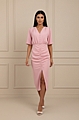 Midi φόρεμα με V λαιμόκοψη και κουμπιά - Ροζ