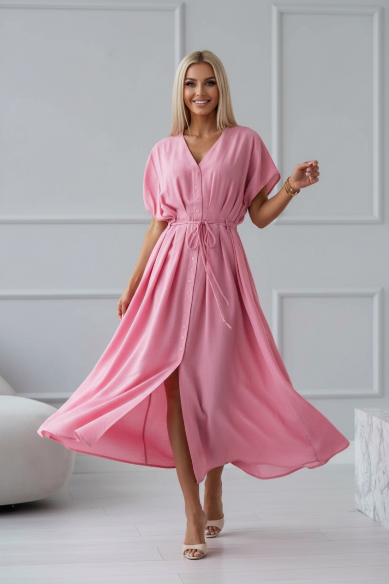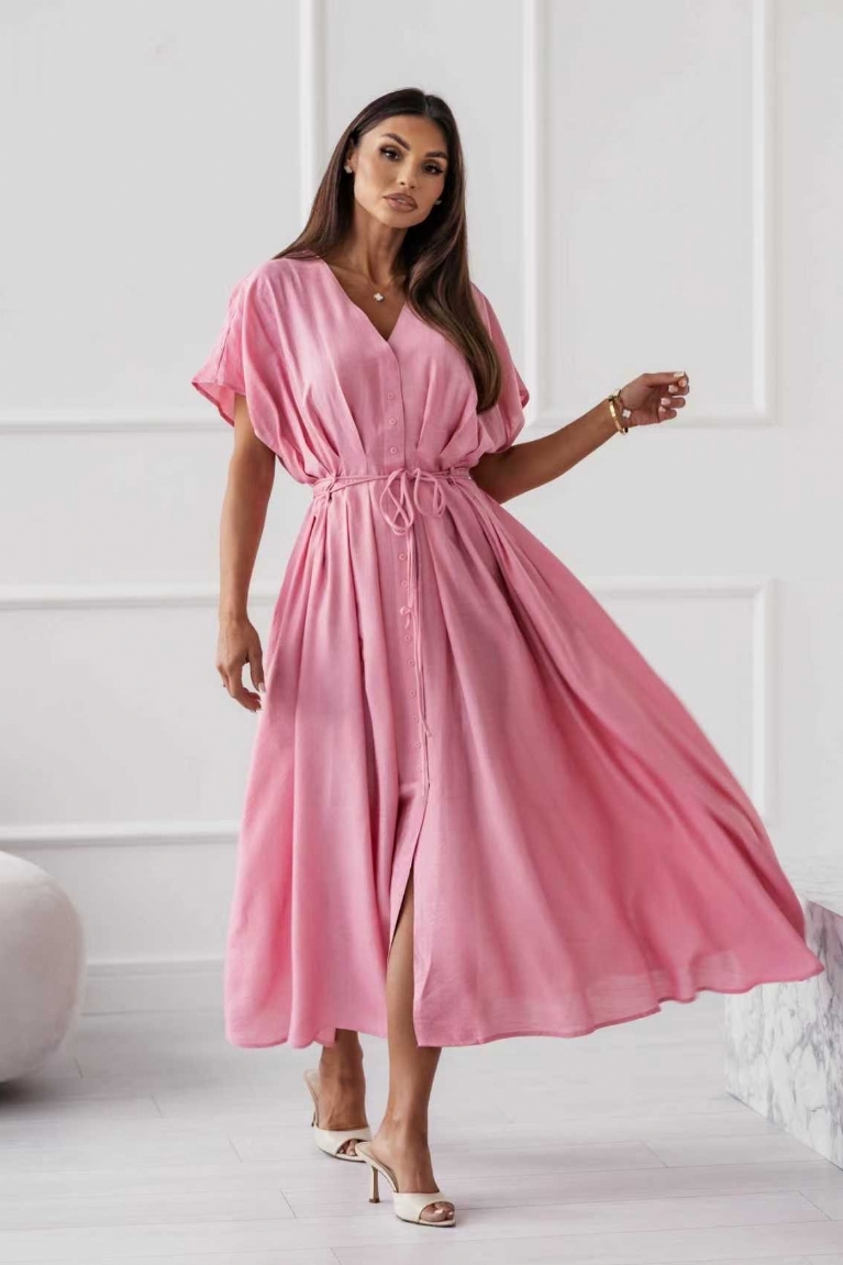 Midi φόρεμα με Kορδόνι στη μέση - Ροζ