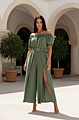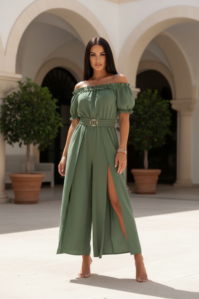 Jumpsuit off shoulder με Σκίσιμο - Λαδί