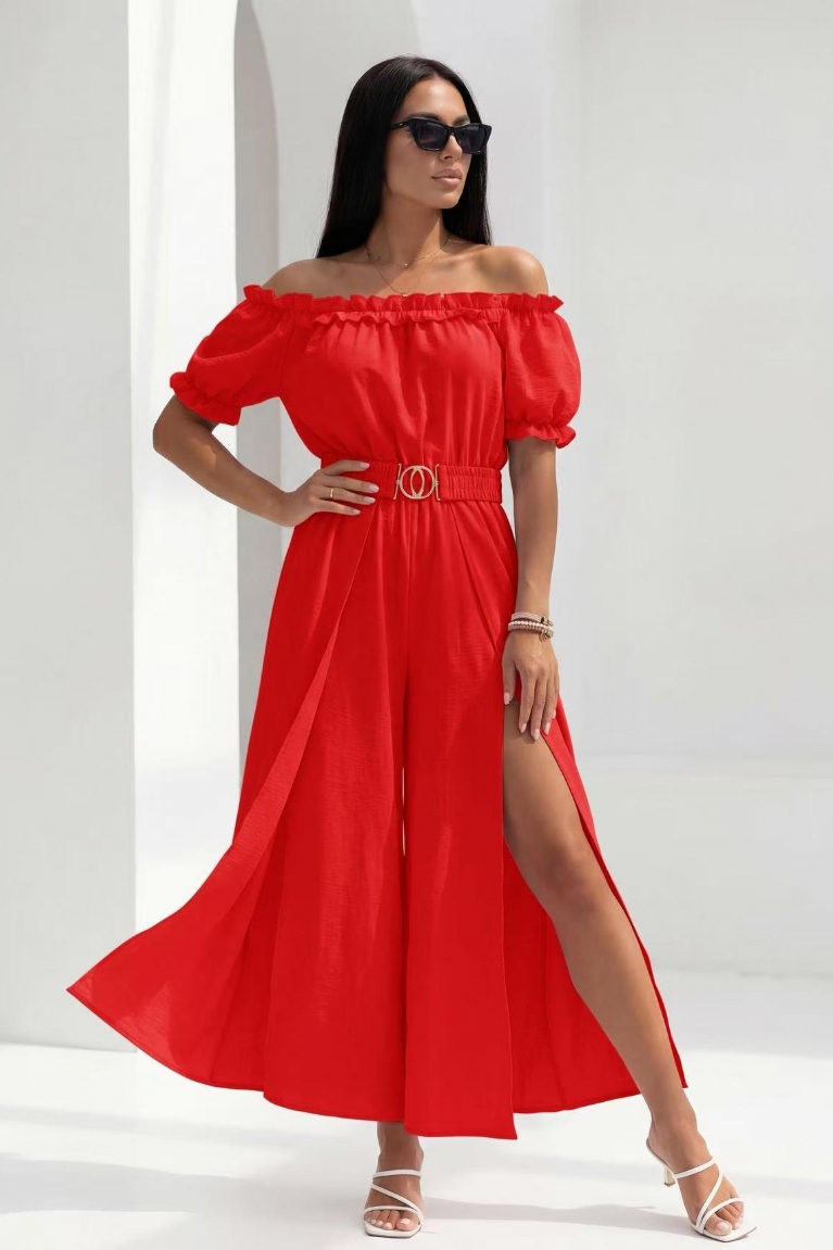Jumpsuit off shoulder με Σκίσιμο - Κόκκινο