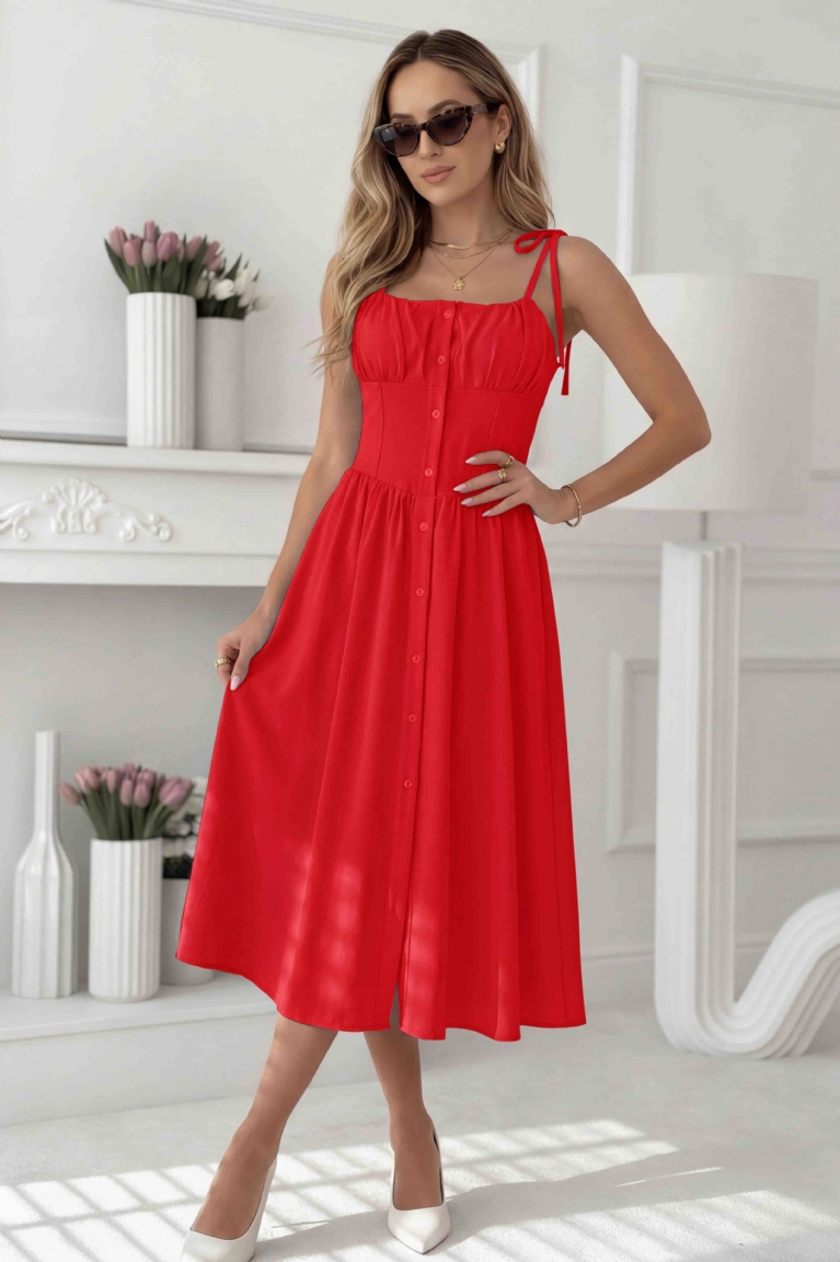 Αναδείξτε τη θηλυκότητα και το στυλ σας με το εντυπωσιακό midi φόρεμα με τιράντες σε έντονο κόκκινο χρώμα.