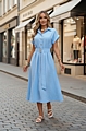 Μίντι Σεμιζιέ Φόρεμα με Ζώνη - Γαλάζιο