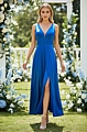 Σατέν Μάξι Φόρεμα με Βαθύ Ντεκολτέ & Σκίσιμο - Μπλε Ρουά