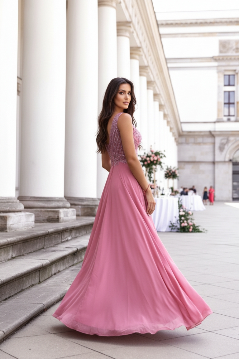 Αναδείξτε τη θηλυκότητά σας με το αέρινο maxi φόρεμα σε ροζ απόχρωση που μαγνητίζει τα βλέμματα.