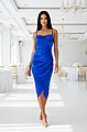 Ανακάλυψε τη μοναδική γοητεία του midi σατέν φορέματος ντραπέ με σκίσιμο σε εκθαμβωτικό μπλε ρουά.