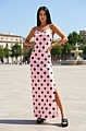 Maxi Φόρεμα Τιραντέ Πουά - Ροζ