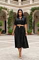 Midi Λεπτό Πουά Φόρεμα με Ζώνη - Μαύρο