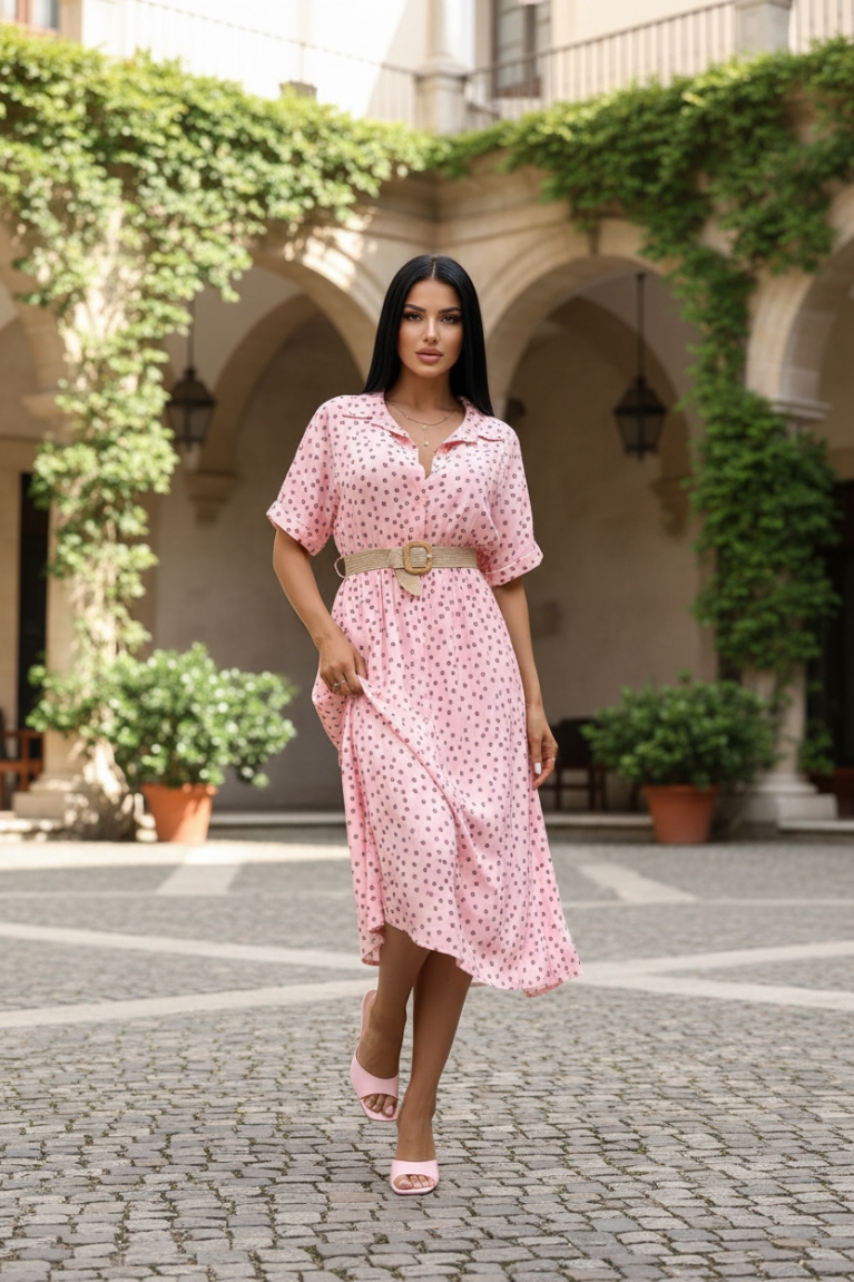 Αναβάθμισε το στυλ σου με το midi λεπτό πουά φόρεμα σε ροζ απόχρωση, ιδανικό για κάθε περίσταση.