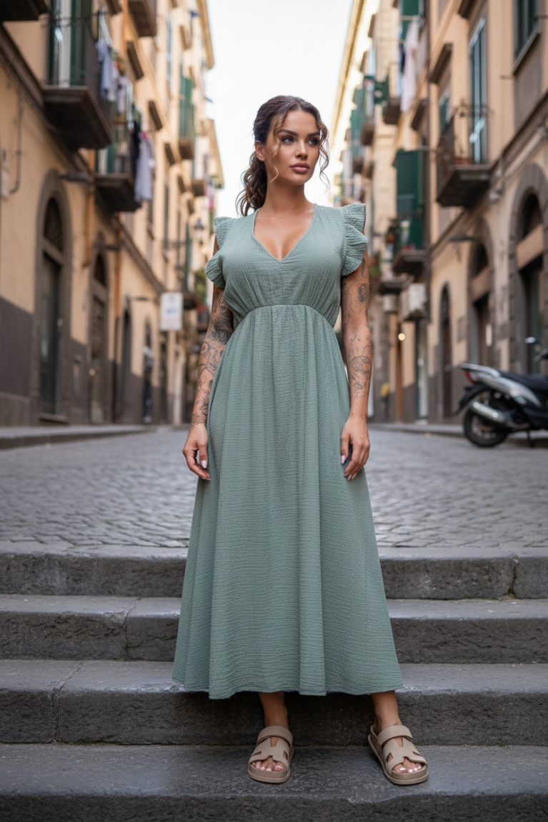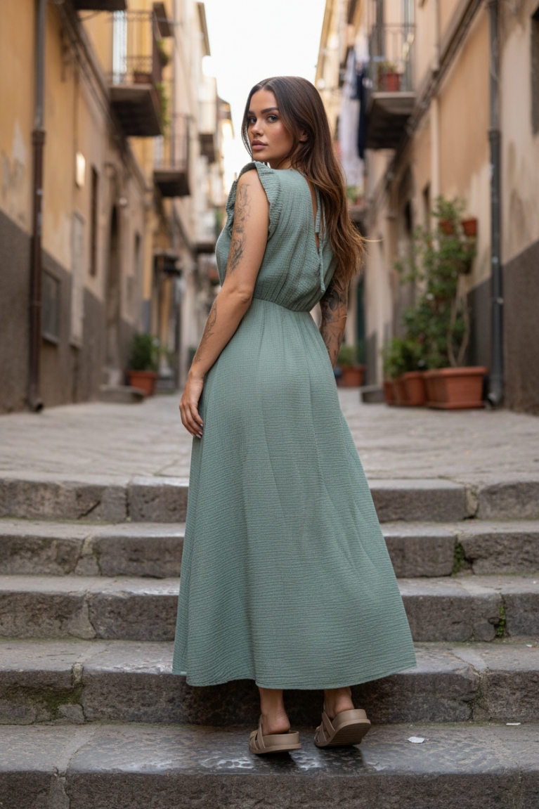Midi Φόρεμα με "V" Λαιμόκοψη - Χακί