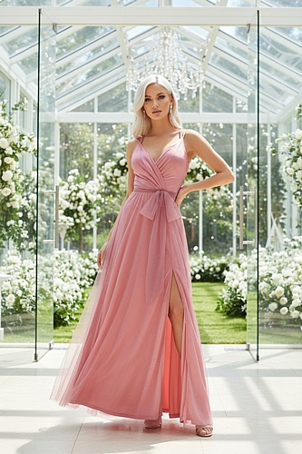Απογείωσε τη θηλυκότητά σου με το maxi τούλινο κρουαζέ φόρεμα σε ροζ απόχρωση, που χαρίζει μοναδική λάμψη και κομψότητα σε κάθε σου εμφάνιση.