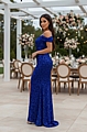 Maxi Φόρεμα Off-Shoulder με Παγιέτες και Σκίσιμο - Μπλε Ρουά