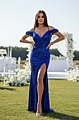 Αναδείξτε τη θηλυκότητά σας με το Maxi Φόρεμα Off-Shoulder με Παγιέτες και Σκίσιμο σε εντυπωσιακό μπλε ρουά χρώμα.