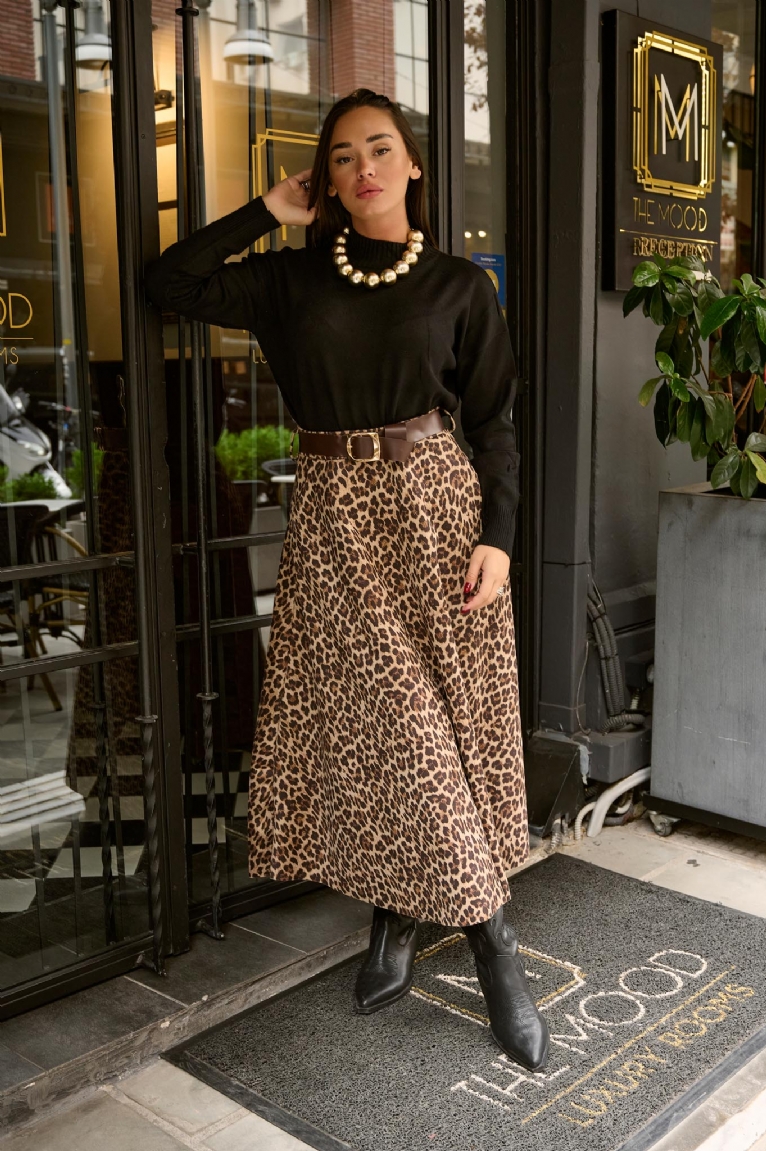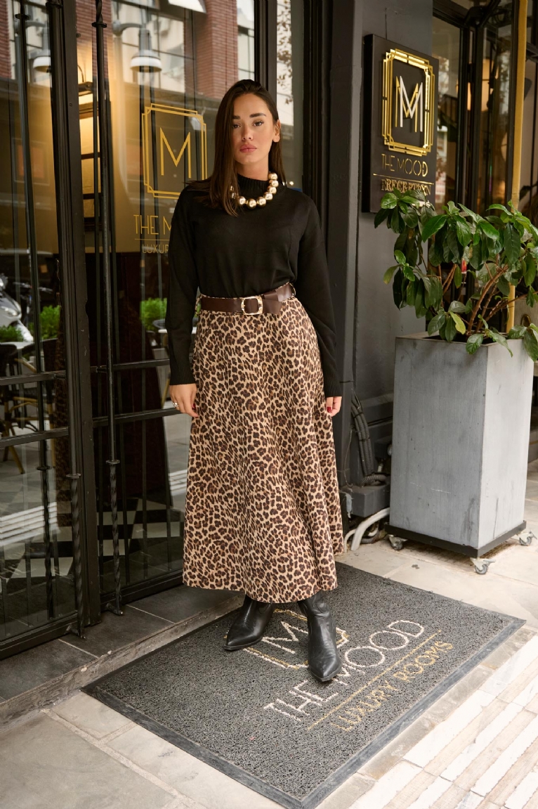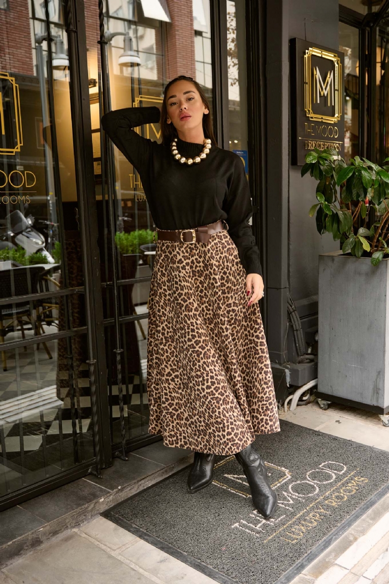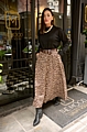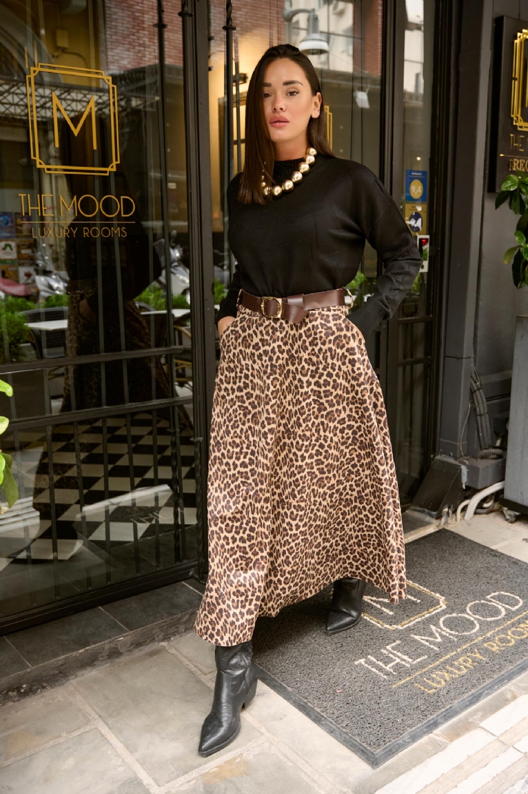 Φούστα Μιντι Animal Print Με Ζώνη & Τσέπες - Ταμπά
