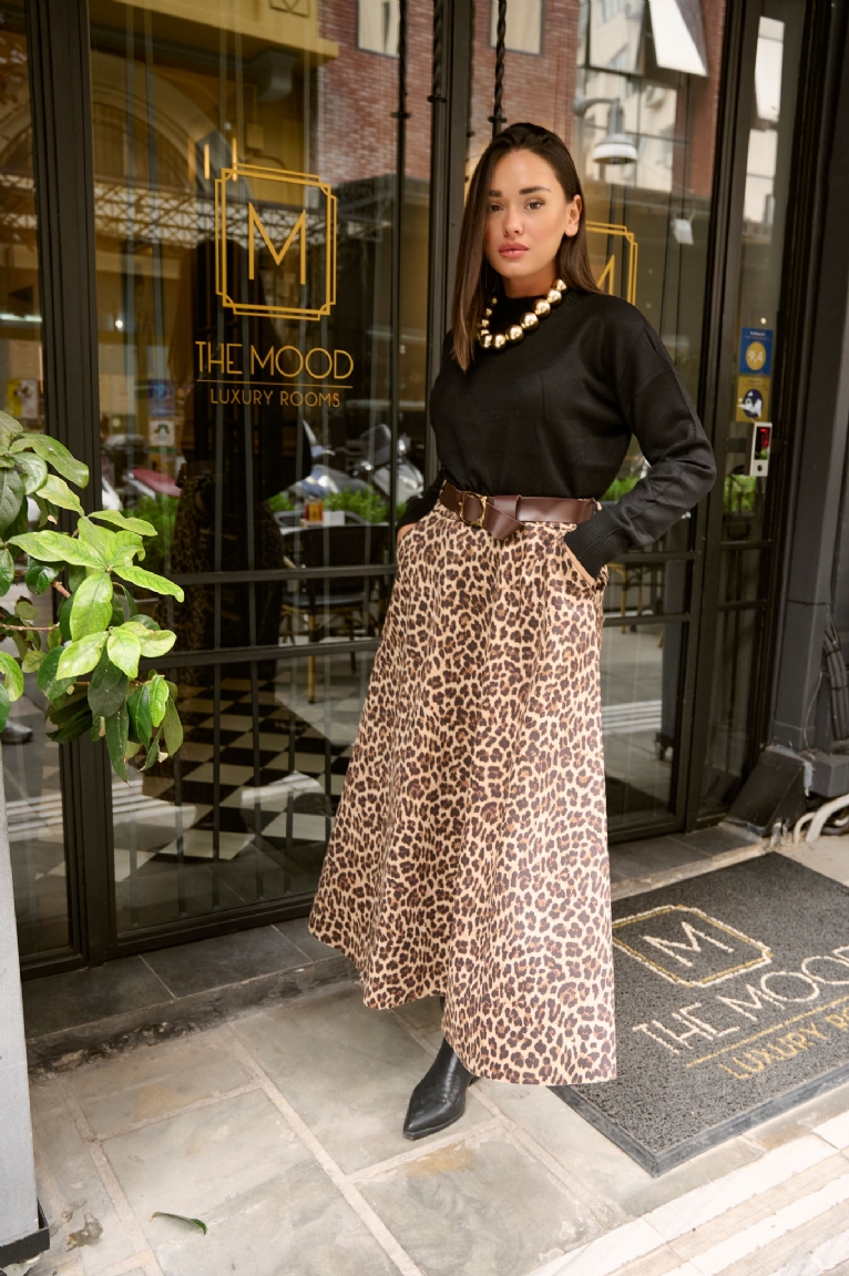 Η Φούστα Μιντι Animal Print με Ζώνη και Τσέπες σε ταμπά χρώμα είναι η ιδανική επιλογή για να προσθέσεις μια δόση θηλυκότητας και στυλ στην γκαρνταρόμπα σου. Κατασκευασμένη από υλικά υψηλής ποιότητας, αυτή η φούστα συνδυάζει άνεση και κομψότητα, ιδανική για καθημερινές ή βραδινές εξόδους.