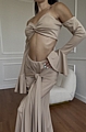 Σετ Crop top με μακριά φούστα με δέσιμο - Μπεζ