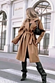 Παλτό Με Ζώνη Κουμπιά & Βάτες Στους Ώμους - Κάμελ