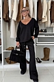 Σετ Μπλούζα Μακρυμάνικη Με V & Παντελόνι Με Κορδόνι - Μαύρο