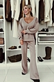 Σετ Μπλούζα Μακρυμάνικη Με V & Παντελόνι Με Κορδόνι - Μπεζ