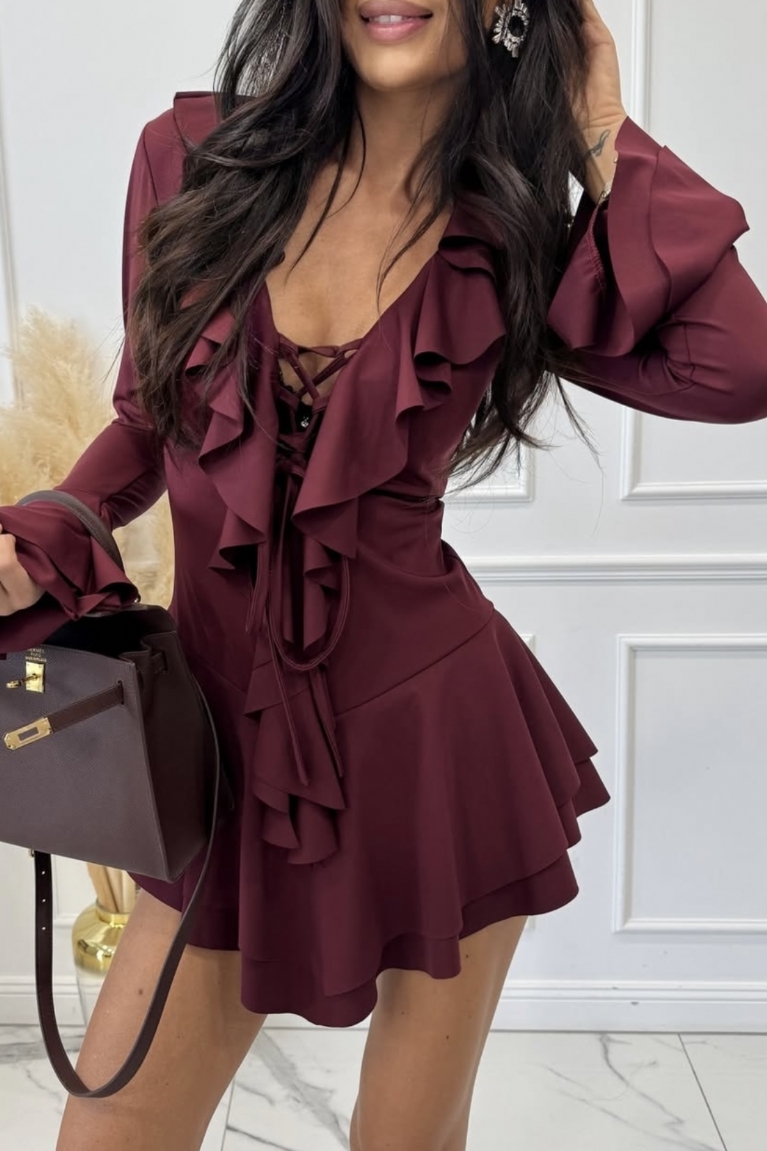 Φόρεμα Mini Μακρυμάνικο Με Βολάν - Μπορντό