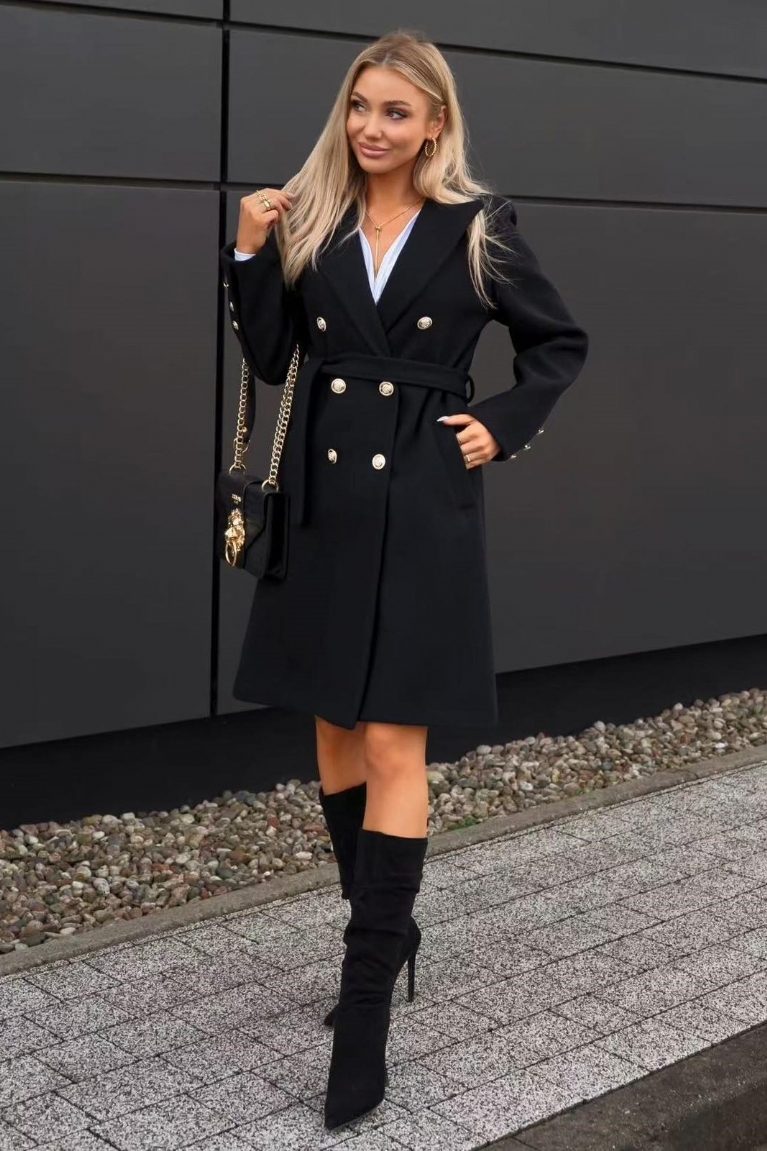 Αναδείξτε το στυλ σας με το Παλτό Με Χρυσά Κουμπιά & Βάτες Στους Ώμους σε κομψό μαύρο χρώμα.