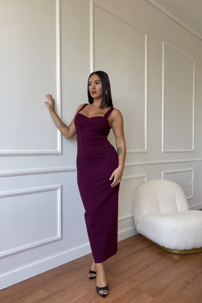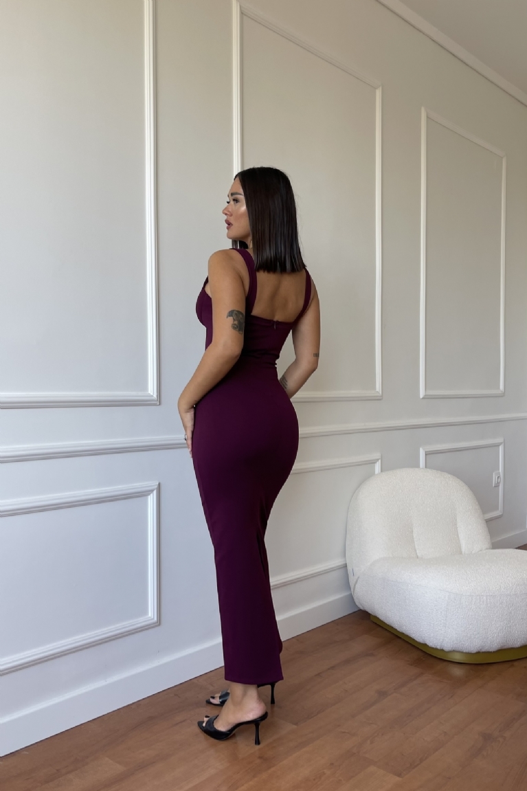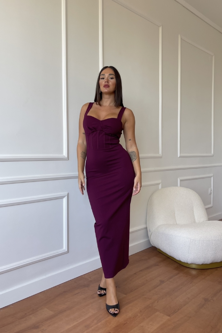 Αναδείξτε τη θηλυκότητά σας με το μακρύ φόρεμα τιράντα σε εντυπωσιακό μπορντό χρώμα.