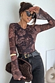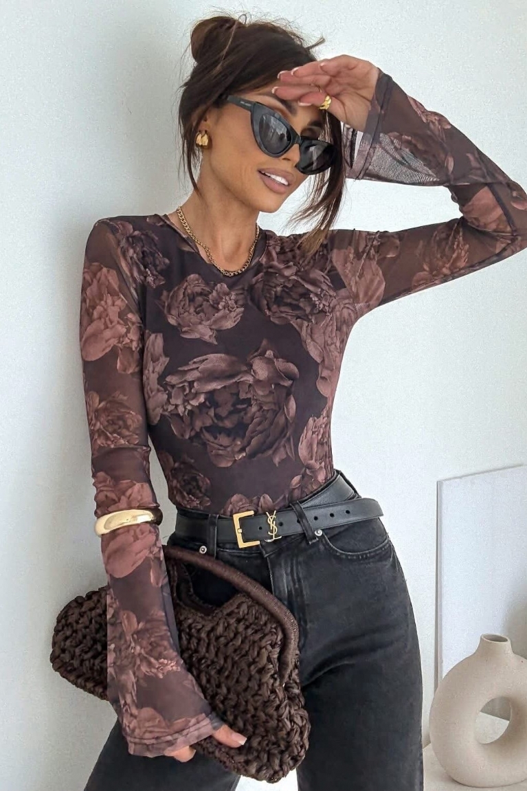 Μπλούζα Μακρυμάνικη Με Διαφάνεια Στα Μανίκια - Καφέ Πούρου
