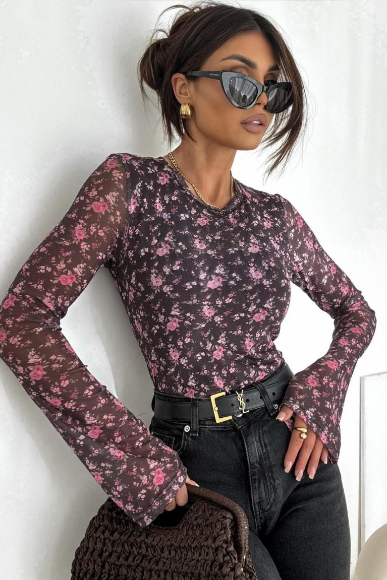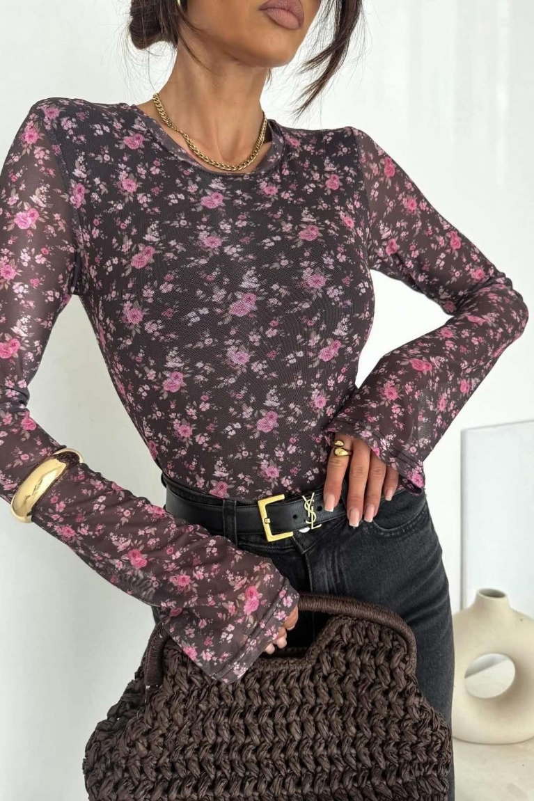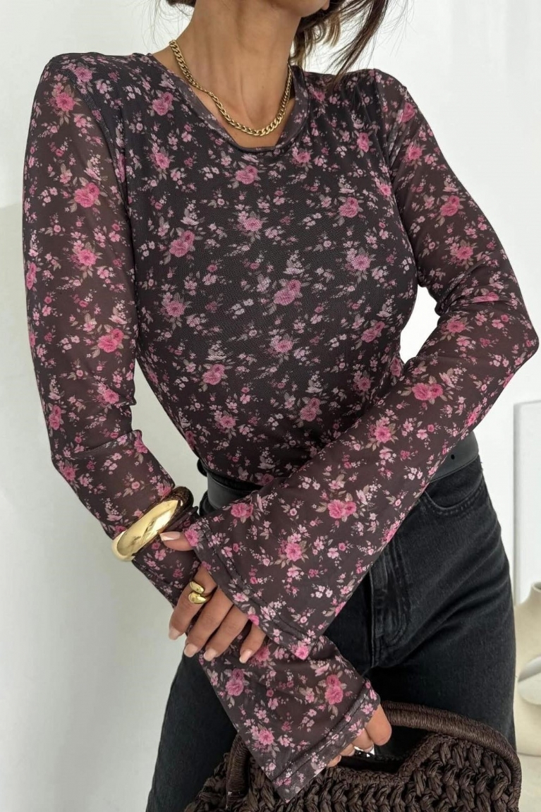 Μπλούζα Μακρυμάνικη Με Διαφάνεια Στα Μανίκια - Ροζ