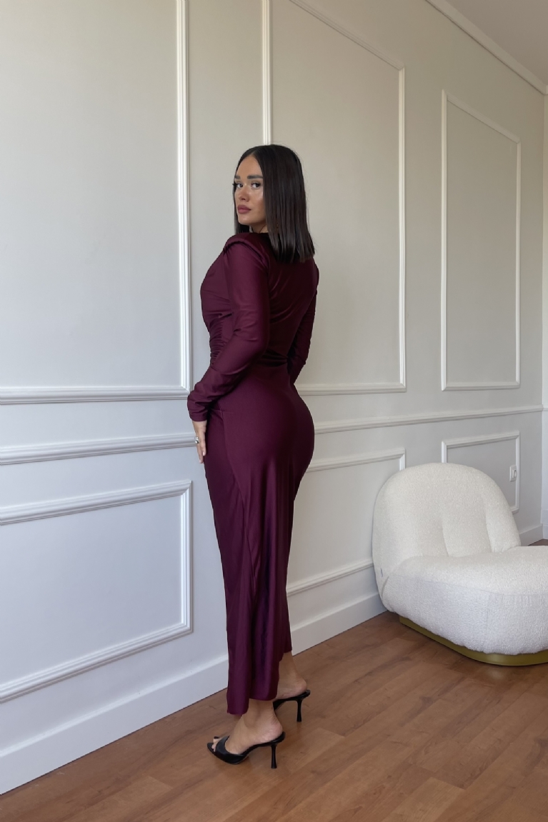 Αναδείξτε τη θηλυκότητά σας με το μακρυμάνικο κρουαζέ φόρεμα σε εντυπωσιακό μπορντό χρώμα.